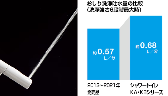 おしり洗浄の吐水量を、最大約1.2倍※にアップ。