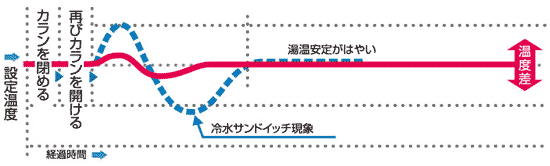 お湯を再出湯するとき、いったん熱いお湯が出て、