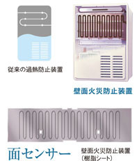 パロマ独自の”面”センサーによる、壁面火災防止装置