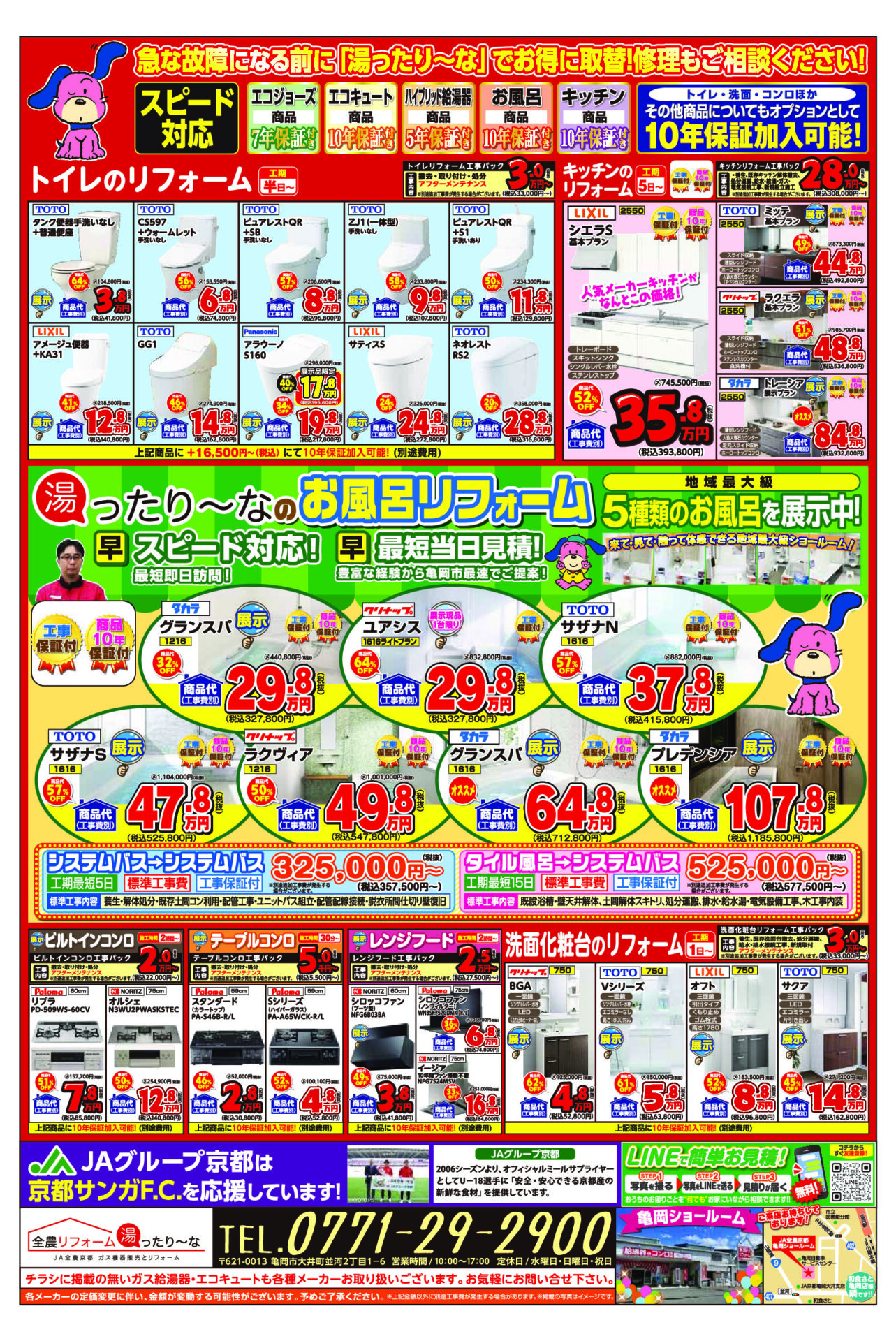 春のチラシ情報 | イベント&お知らせ | 全農リフォーム湯ったり~な お問い合わせ お問い合わせ 簡単お見積り 来店予約 LINE リフォームメニュー 給湯器 エコキュート コンロ レンジフード トイレ 洗面台 キッチン ユニットバス すべて見る 施工事例 給湯器 コンロ レンジフード トイレ 洗面台 キッチン ユニットバス すべて見る イベント&お知らせ 会社案内 会社案内 ショールーム 選ばれる理由 お役立ち情報 リフォームの流れ よくある質問 保証&サポート