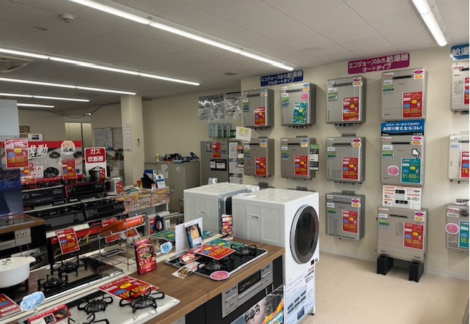 私たちは、地域の皆さまの「住まいの困った」に寄り添う、地域密着型のリフォーム店舗です。展示スペースは小規模ではありますが、常時15台のガス給湯器を取り揃え、お湯廻りのリフォームに特に力を入れております。給湯器やガスコンロ、トイレなどの設備交換から、キッチン・浴室などの大型リフォームまで幅広く対応いたします。
